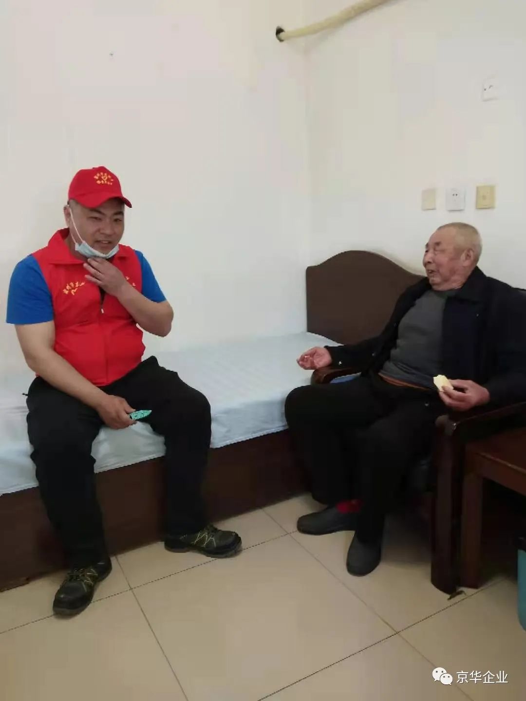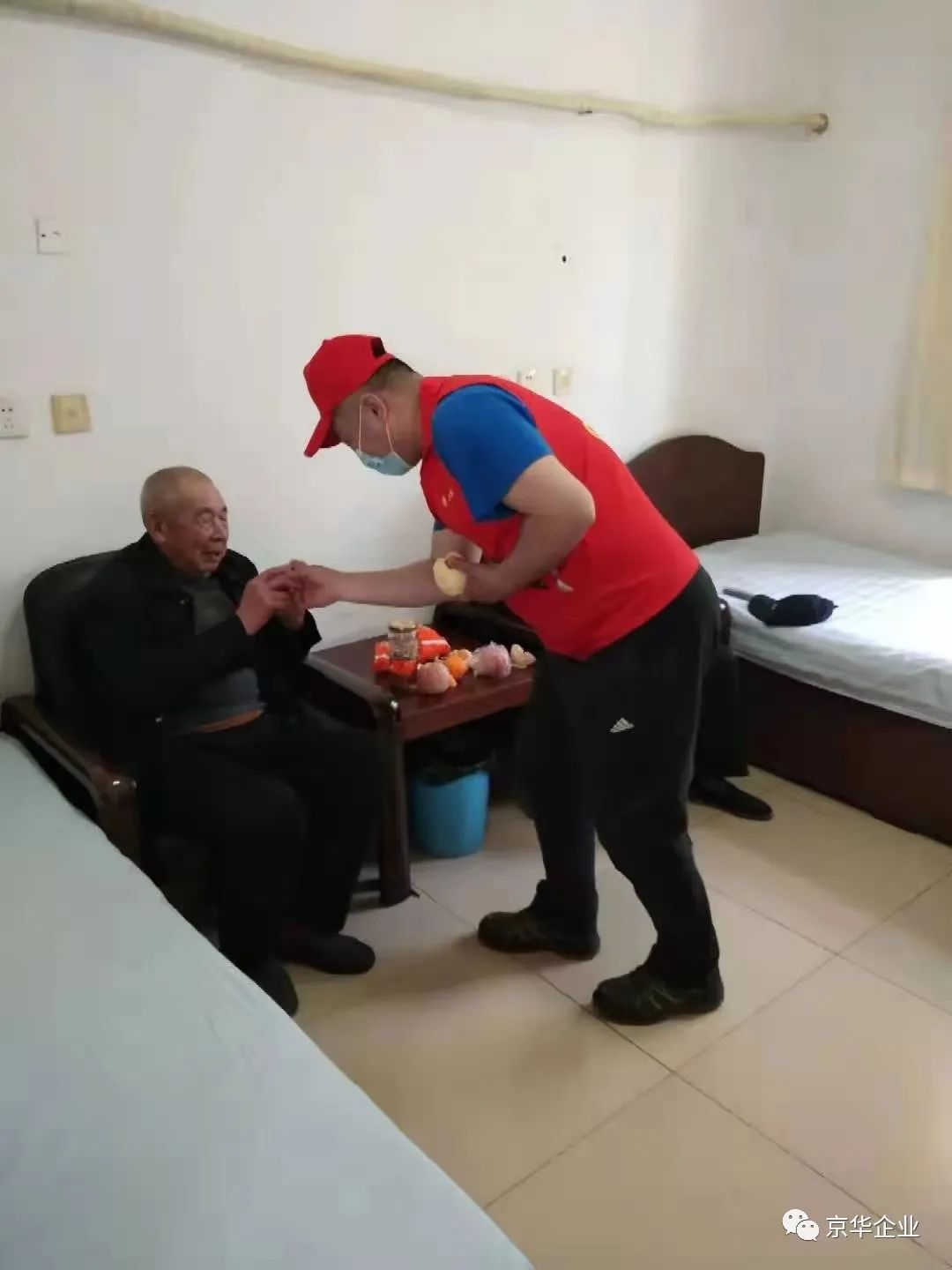 據(jù)了解,勝芳鎮(zhèn)敬老院目前有85位老人,大部分都是60歲以上的孤寡老人,京華企業(yè)18名愛心志愿者給老人們帶來了水果、大米、方便面等慰問品,祝福老人們健康長(zhǎng)壽、幸福安康,過程中志愿者們?yōu)槔先藗兿魉?、剝橘子,更有我團(tuán)隊(duì)中的4名黨員來到老人的住處與老一起嘮家常,其中一名女志愿者跟老人一起拜起了佛,共同祈禱眾生平安,面對(duì)來自企業(yè)的關(guān)愛,老人們都很開心,臉上洋溢著欣喜的笑容,不斷對(duì)志愿者們表示感謝!