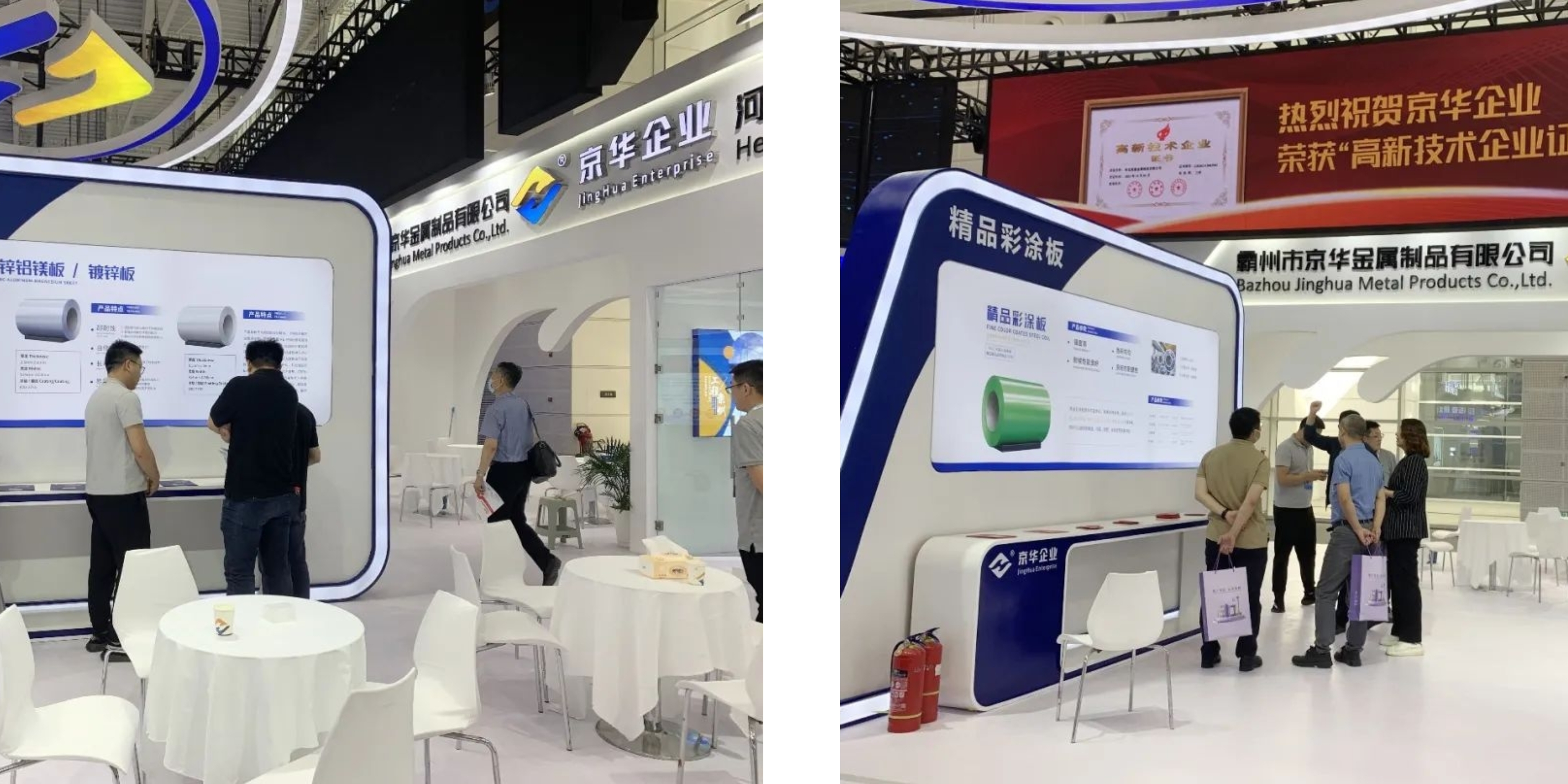 在此次展會上,京華企業(yè)參展商品主要包括鍍鋅板、鋅鋁鎂板、高鋁鋁鋅鎂板、京華精品彩涂板、恒新高性能彩涂板等。以規(guī)格品種齊全的產(chǎn)品,配合最先進(jìn)的生產(chǎn)工藝,成為了同行業(yè)展品中的一大亮點(diǎn)。