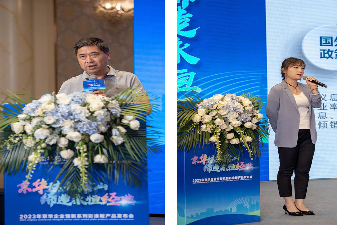 深耕合作、共謀發(fā)展。會議聯(lián)合主辦方獨家代理唐山市豐潤區(qū)營盛彩鋼有限公司董事長周小林先生、總經(jīng)理周立揚先生出席會議。周總在會上發(fā)表致辭,講述了與京華企業(yè)的友好合作歷程以及對京華企業(yè)產(chǎn)品質(zhì)量的高度認可和贊揚,并表示將繼續(xù)與京華企業(yè)展開深度合作,共同推動涂鍍板材行業(yè)的不斷發(fā)展。