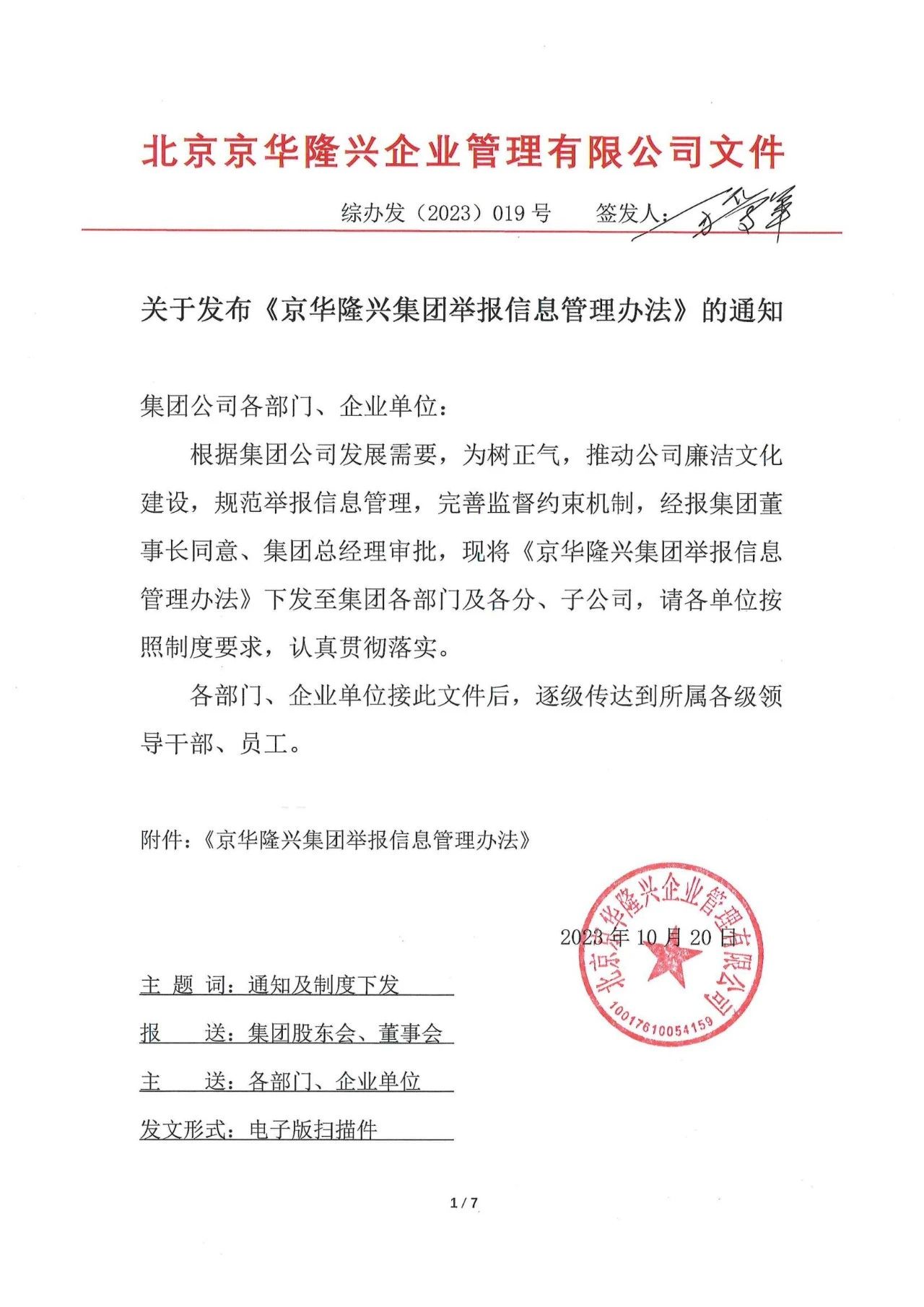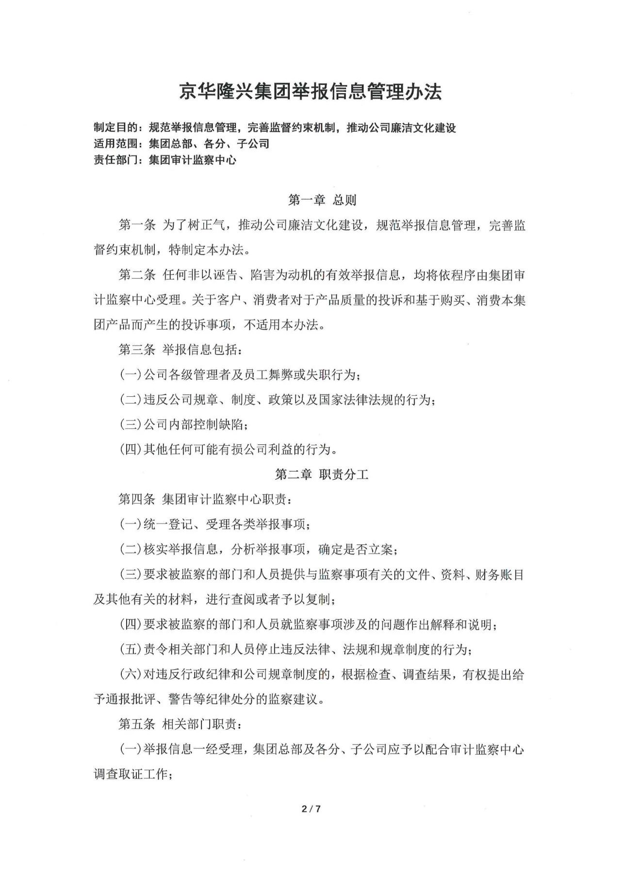《京華隆興集團(tuán)舉報信息管理辦法》