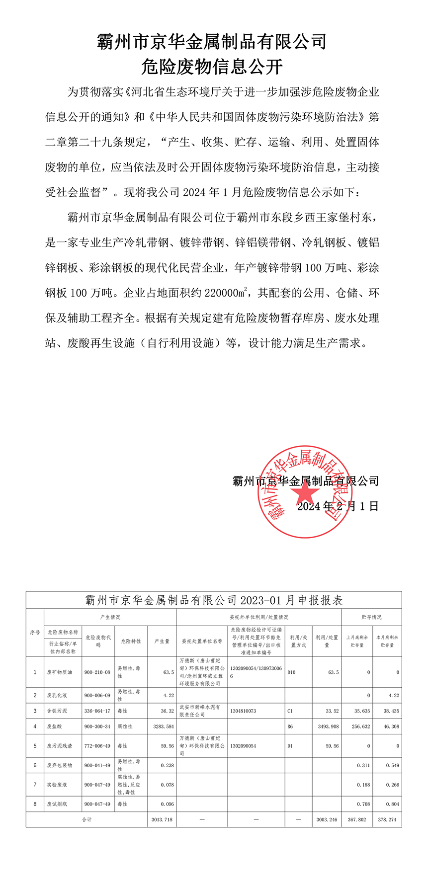下一篇:24年2月危險(xiǎn)廢物信息公開-霸州市京華金屬制品有限公司