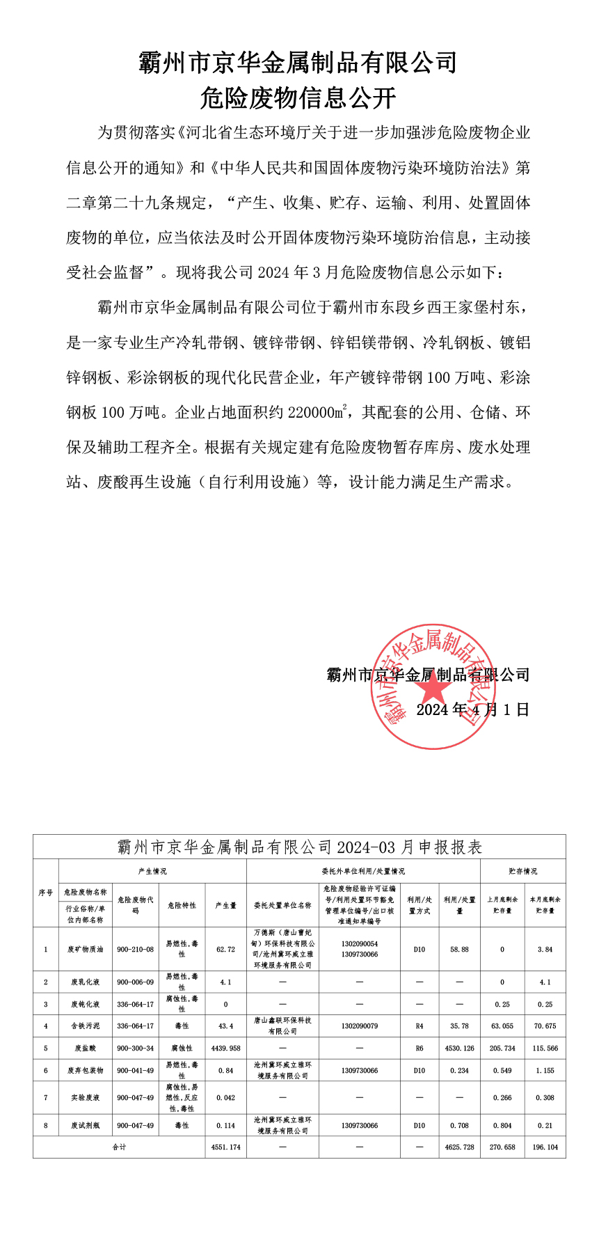 下一篇:24年4月危險(xiǎn)廢物信息公開(kāi)-霸州市京華金屬制品有限公司