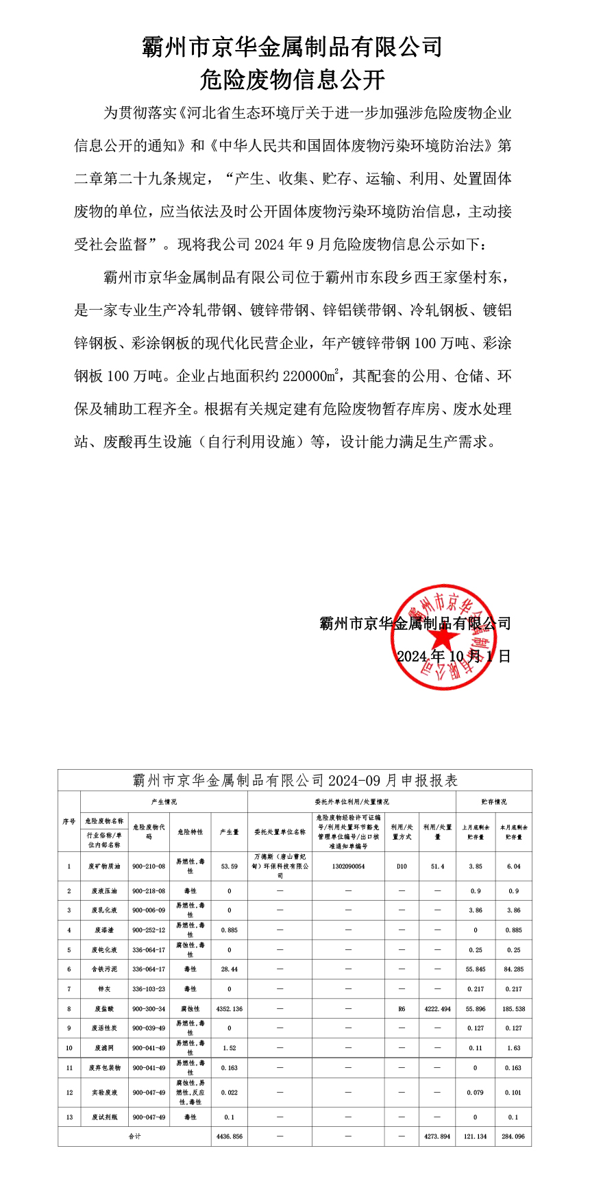 下一篇:24年10月危險(xiǎn)廢物信息公開(kāi)-霸州市京華金屬制品有限公司